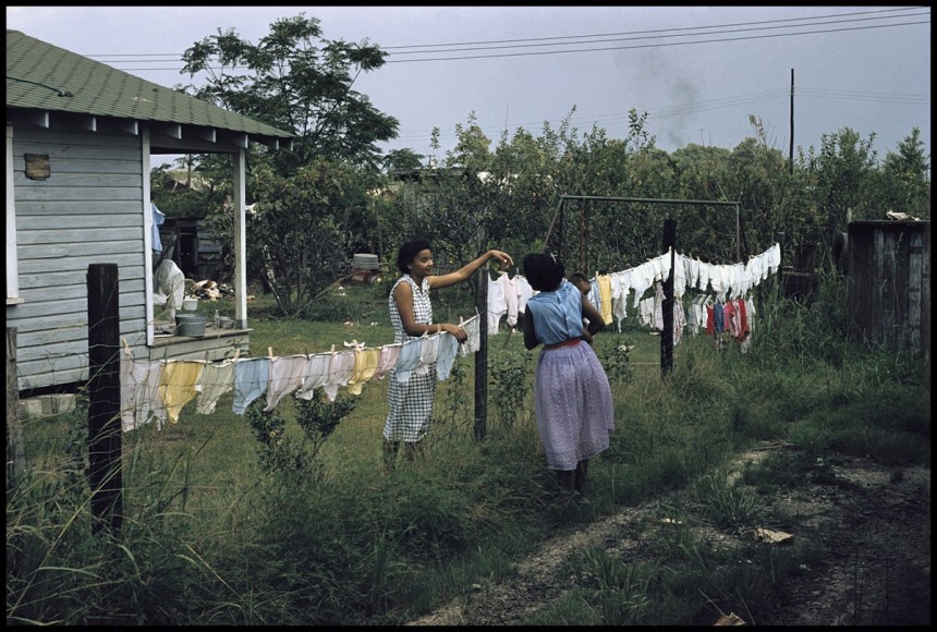 Gordon Parks was the first African American photographer employed by Life magazine, and the Segregation Story was a pivotal point in his career, introducing a national audience to the lived experience of segregation in Mobile, Alabama. Parks’ artworks stand out in the history of civil rights photography, most notably because they are color images of intimate daily life that illustrate the accomplishments and injustices experienced by the Thornton family. Immobility - both geographic and economic - is an underlying theme in many of the images. Parks employs a haunting subtlety to his compositions, interlacing elegance, playfulness, community, and joy with strife, oppression, and inequality. An otherwise bucolic street scene is harrowed by the presence of the hand-painted “Colored Only” sign hanging across entrances and drinking fountains.