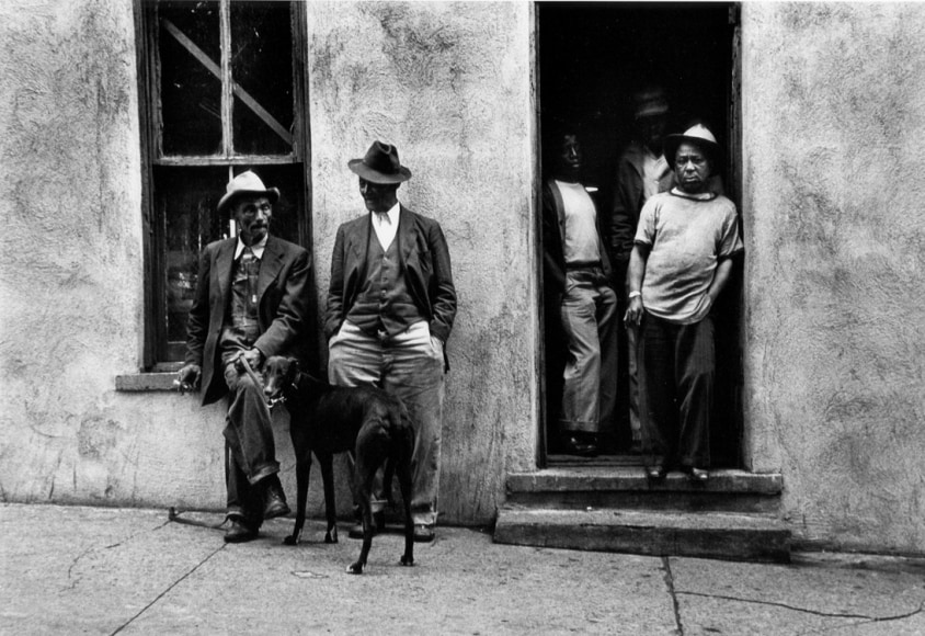 By 1950, Chicago was the de facto capital of African-American life in the US, with more black inhabitants than any other city in America––including three of Parks’ classmates. Parks discovered them residing only a mile or two apart from one another on the city’s South Side. Untitled, Chicago, Illinois (1950), depicts Parks’ classmate Fred Wells and his wife Mary in front of their apartment building in the Washington Park neighborhood. A number of the photographs in the exhibition repeat the simple compositional device seen here––featuring a classmate and his or her family, framed by the front door of their home. These images highlighted the families’ similarities to, rather than differences from Life’s readers, who would have found such strong representations of black families at once surprising and reassuring.