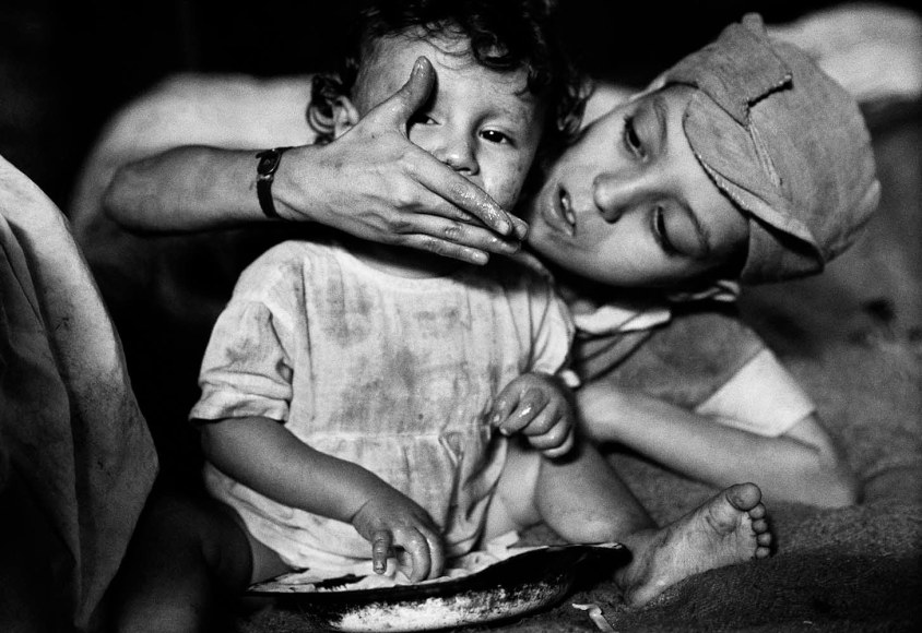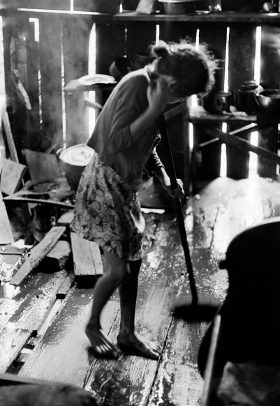 Parks’ photographs show Flávio cooking, cleaning, scavenging for supplies, and minding his siblings, despite his suffering from bronchial asthma and malnutrition, while his parents work outside the home. The photographer later recalled the da Silva home as being in a constant state of chaos and wondered “how, in such a weak condition, [Flávio] could face this each day—the fighting, the whimpering, and the filth.”
