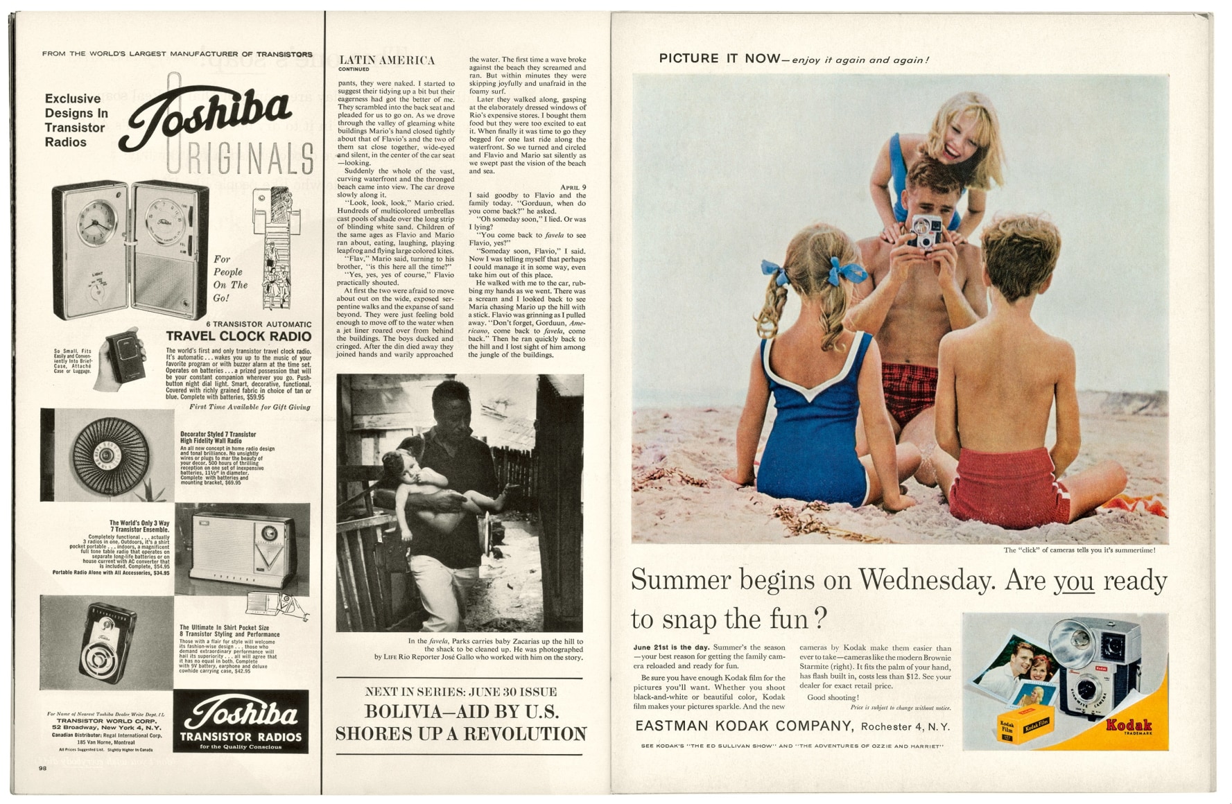 Parks was initially assigned to photograph a series of indigent fathers in the favelas—people his editors believed would best personify the wretchedness of the place. While climbing the hills to the slum, behind the glamorous Rio shoreline that tourists knew, Parks and José Gallo, his Life contact, stopped to rest beneath a jacaranda tree. There they spotted a wan, emaciated boy carrying a tin of water on his head. He stopped momentarily, keeling over with a violent cough, and then, meeting Parks’ gaze, flashed a broad and completely unexpected smile. To Parks, this boy, Flavio da Silva, embodied the brutality of poverty—and he decided to shift the focus of his story.