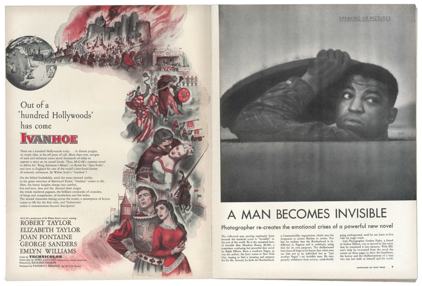 Invisible Man by Ralph Ellison represents a watershed in the canon of American fiction. Winner of the National Book Award in 1953, the novel has been hailed as one of the first to treat the black experience in twentieth-century America as a full human experience. Soon after its publication, Parks set out to evoke passages from the novel by shooting a series of images of an actor on the streets of Harlem, where Ellison had lived for more than a decade.