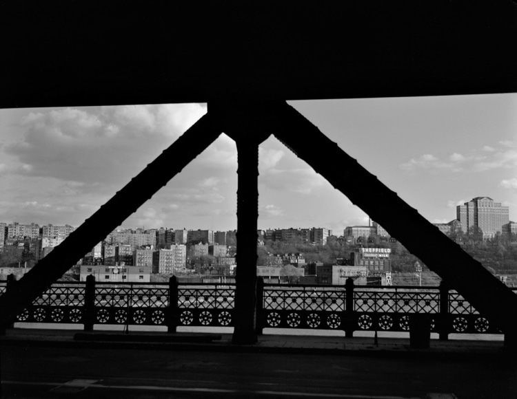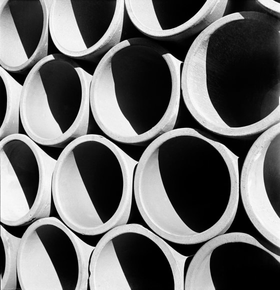 As part of the Standard Oil project, Parks produced an extensive series of photographs of workers in New York. The pictures showcase his mastery of direct and honest portraiture, and convey the unique industrial geometry of the period. They frame images of men and women building the city within the dark sweep of its most fundamental elements, elegantly contrasting people with the angles of bridges, beams, and buildings, and emphasizing the rhythmic repetition of concrete pipes and steel girders.