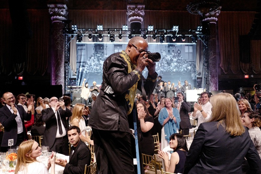 Jamel Shabazz photographing the attending “A Great Day in Hip Hop” participants. Photo by Mike Vitelli for BFA.